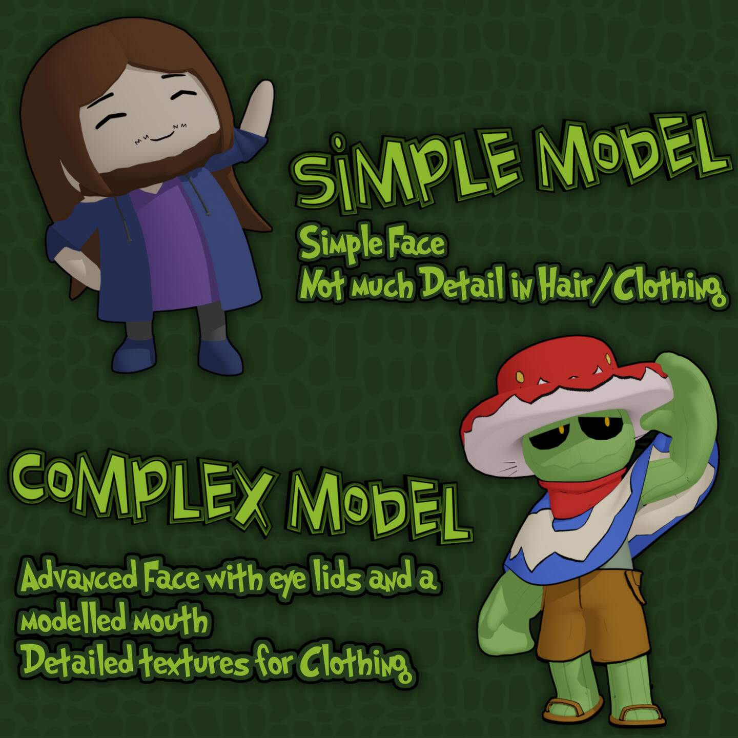 | VRChat/ChilloutVR Compatibility (Comes with Skeleton/Rig!) | +£30 | Simple Model, Complex Model, Standalone |